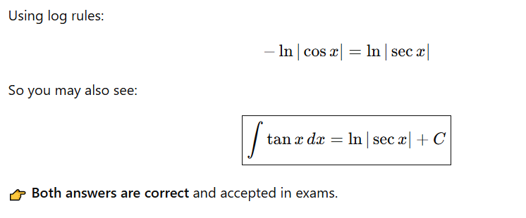 Before integrating tan x, always remember: